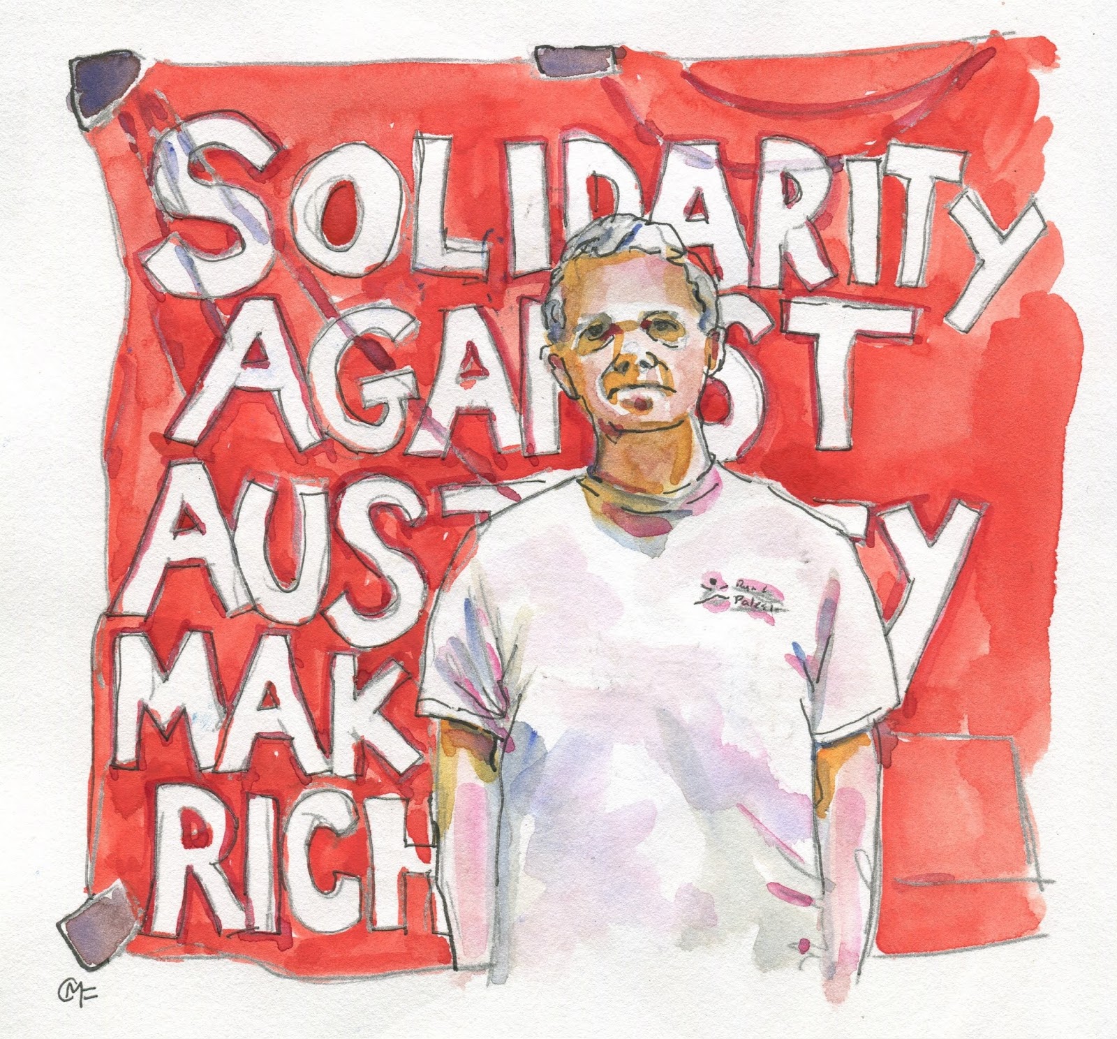 When I heard that one of my social justice heroes John Clarke - a labour, anti-capitalist, anti-poverty activist (who I first met in the 1990s through the Ontario Coalition Against Poverty ) was “retiring” in May 2019 I sketched him as well! There's not a LOT of money in anti-poverty work so friends are contributing to his pension fund here: https://fundrazr.com/ 91QQl6?ref=ab_17hI70_ab_34f LkAoHnrn34fLkAoHnrn